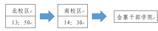 车辆将于18日(周三)13:50从北校区(教学C楼门口)出发至南校区,14:30准时从南校区(南大门西侧)出发前往金寨干部学院,请务必准时到达乘车地点,乘坐指定大巴。