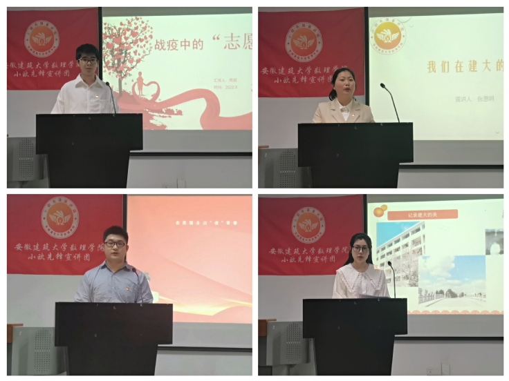 疫情反复,校园封闭管理期间考验着每一位在校大学生。此时的宣讲团凝聚力量,以“青春战‘疫’”为主题,通过学院微信公众号“‘小欧’先锋宣讲团”专栏,分战“疫”中的“志愿红”、生活依然可以青春洋溢两个板块在线上展开宣讲。宣讲员陈超、曹柏洋讲述青年志愿者奋战一线,恪尽职守的感人故事,曹柏洋更是分享了自己作为社区志愿者服务一线的难忘经历。王萍、张思明两位宣讲员则是分享了多彩校园生活小妙招:读一本好书、听一段音乐、拍一张春景、打一场篮球,徜徉书海、漫步园林、奔跑操场都可以让心情得到释放。他们号召大家听从指挥,积极配合学校防疫工作,等待疫情结束后与美好春天尽情拥抱。