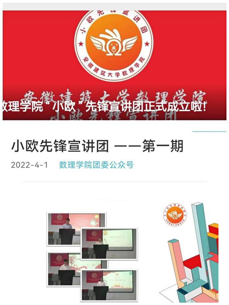 近日,数理学院“小欧”先锋宣讲团通过线上线下两种形式精彩开讲。团队紧密结合新时代特色,以青年学子的视角,选拔一批理论水平过硬的优秀党员,针对党的理论、党的历史、红色文化、重要讲话精神等开展宣讲;同时选树一批党员中的先进典型,针对良好的学习习惯、科学的学习方法以及综合能力的培养等开展宣讲。