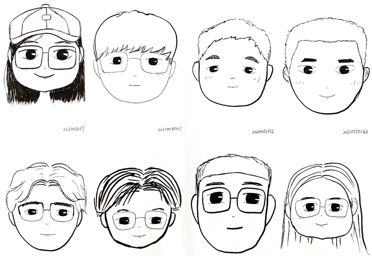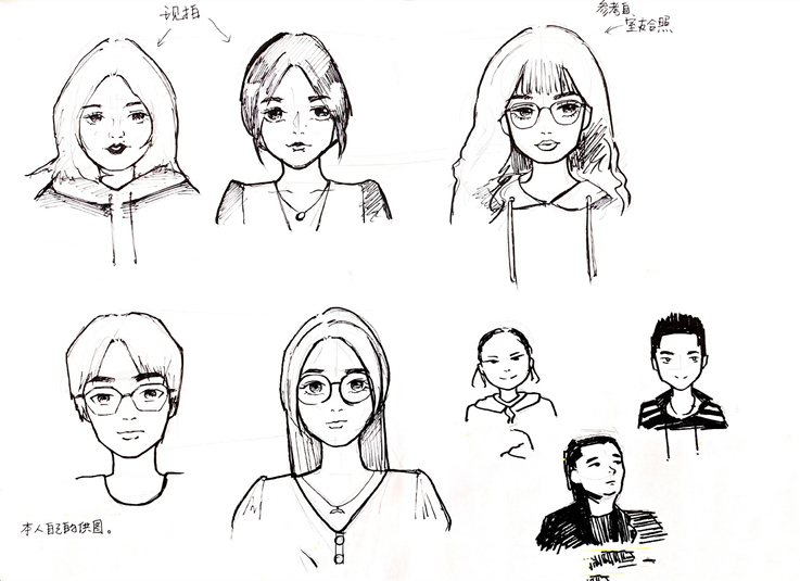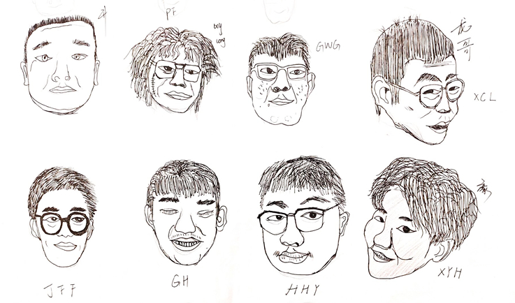 相对内向的我转了专业,不熟悉的班级和不熟悉的同学,我第一个便画了我自己。慢慢地,我又认识了班长、学习委员等人,我画他们,似乎只因他们对我来说比较熟悉,并没有什么其他原因。但其实我错了,我画他们是因为他们成为了我不可或缺的同学和朋友,所以我想尽量把他们画的好看一些。(via.葛运祎)