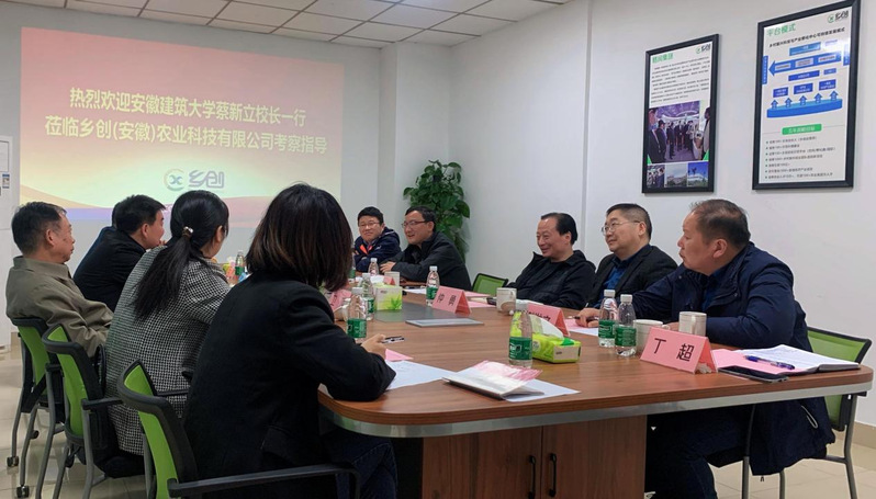 随后,蔡新立一行参观了乡创(安徽)农业科技有限公司,听取了格闰集团关于装配式绿色农房建设、新型乡村建筑产业的介绍,以及乡创公司在乡村振兴科技赋能、产业运营、项目孵化、人才引育、专家智库、发展规划等方面的工作汇报。双方就产学研合作推动乡村振兴、农业科技成果转化等问题进行了深入的交流。