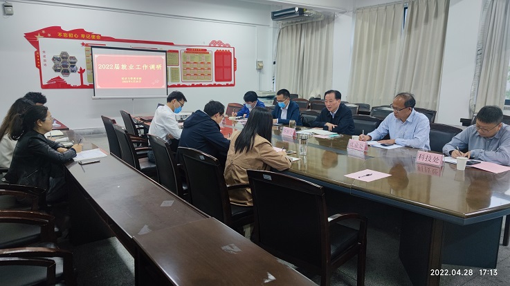 4月25日,校党委副书记、校长黄显怀深入环能学院指导调研2022届毕业生就业工作,学院党政班子领导和毕业班辅导员参加。