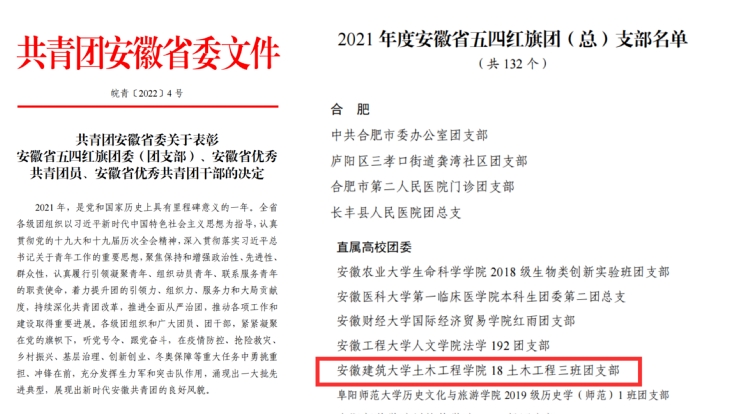 三年多来,18土木工程三班团支部在学校、学院党委和共青团各级团委的正确领导下,积极发挥基层团组织力量,将学习、服务、奉献作为在校生活的主题,讲团结、讲奉献,努力提升团支部的“三力一度”。未来,也将继续感恩奋进,躬身实践,珍惜荣誉,再立新功。(文/图:范瑾;审核:王媛)