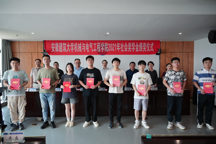 本网讯 5月25日,机电学院在实验综合楼第一会议室举行2021年社会奖学金颁奖典礼。校党委书记孙道胜、2004级机械校友代表徐邦耀、学生工作部、校友工作处负责人参加颁奖典礼,机电学院领导班子成员,全体辅导员、获奖学生及部分学生代表参加,典礼由学院党委副书记主持。