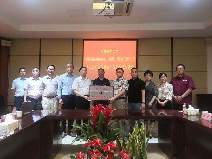 本网讯 为深化教育部访企拓岗促就业专项行动,拓宽毕业生就业渠道,做好毕业生就业服务工作。5月25日,校党委书记孙道胜携校就业处、土木学院、材化学院、机电学院相关负责人前往双凤工业区大型钢结构件专业生产商深交所上市公司鸿路钢结构股份有限公司、学校社会奖学金设立单位走访调研,学校教育发展基金会理事成员陪同前往。