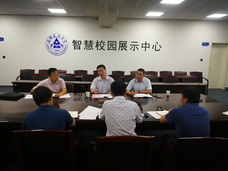 本网讯 5月26日,校党委副书记、校长黄显怀,校党委常委、副校长蔡国军及国有资产处相关负责同志,到信息网络中心调研指导智慧校园建设工作,信息网络中心负责人及中心各部门相关人员参加了本次会议。