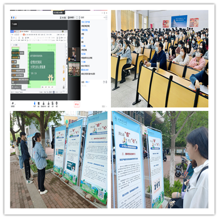 为筑牢疫情防线,守卫校园平安,引导全校师生正确认识疫情对我们心理产生的影响,做好心理调适,学生处举办了“万名师生同上一堂心理课”活动,各学院组织学生线上观看由安徽省心理卫生协会主办的疫情期间心理健康教育讲座。学生处通过展板的形式在南北校区发布了《疫情期间大学生心理健康调适指南》,这些活动的顺利开展,帮助广大师生正确认识疫情下的心理应激反应,通过科学的方法来自我调节,不仅提升大学生心理素养,而且增强了全体师生共克时艰的信心。