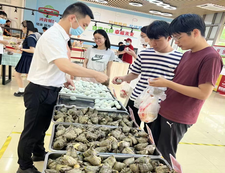 端午节当天,学校各食堂在这个喜悦的日子里,为师生们送来了满满的祝福,凡当日早上、中午在食堂就餐的师生可免费领取一个粽子和一个咸鸭蛋。各食堂设置专门窗口和位置分发粽子和咸鸭蛋,领取现场秩序井然,师生们笑容满面,节日氛围浓厚。