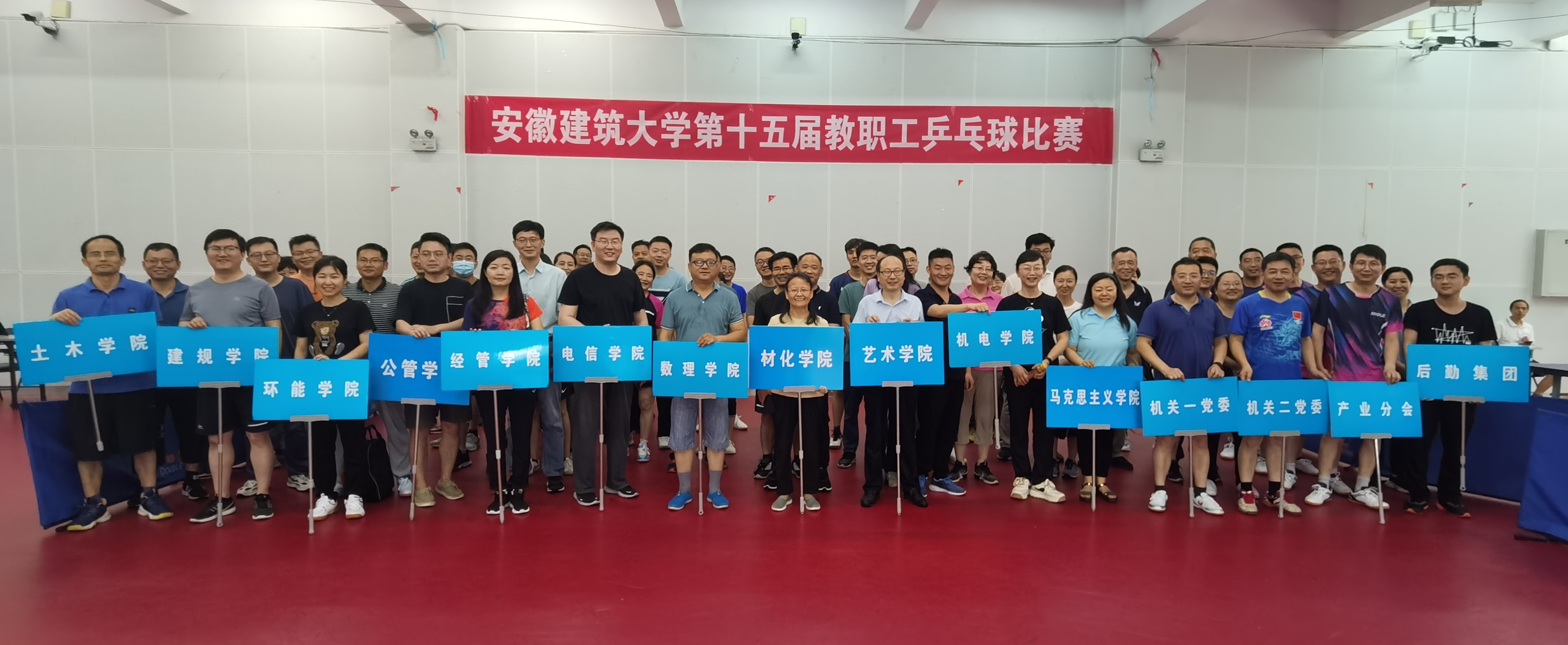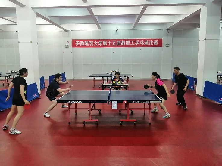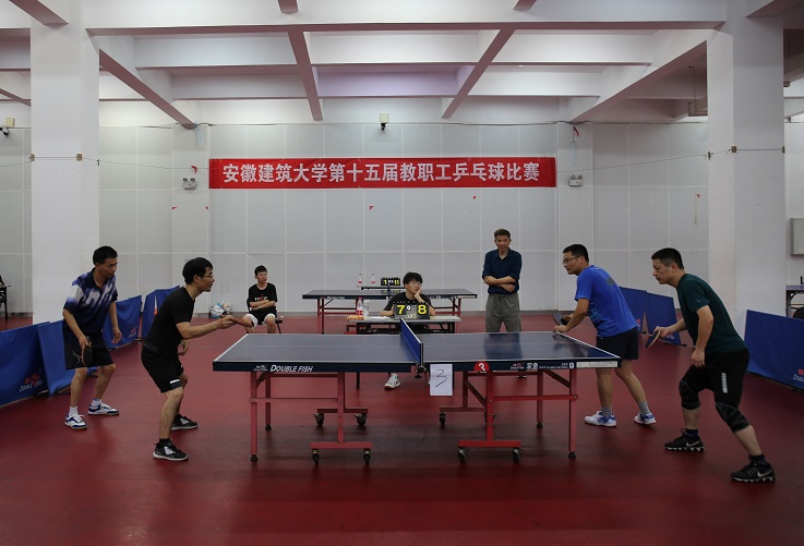 本网讯 6月5日,校第十五届教职工乒乓球比赛在南校区体育馆举行,本次比赛由校工会主办,教职工乒乓球协会承办,共有来自基层分工会的15支队伍共76名选手参加了比赛。