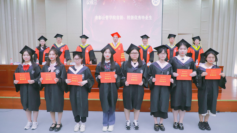 在庄严的国歌声中,毕业典礼正式拉开序幕。学院党委书记宣读《公共管理学院关于表彰省级、校级优秀毕业生的决定》,向圆满完成学业的同学们表示热烈的祝贺,对优秀毕业生给予充分肯定,并由与会领导为优秀毕业生颁发证书、合影留念。随后,在庄重而神圣的学位授予仪式上,与会领导和2018级学业导师为2022届毕业生拨穗正冠并合影留念。流苏扶正,麦穗成熟,希望毕业生们不忘母校,锐意进取,在广阔的社会主义建设事业中,贡献建大人的力量。