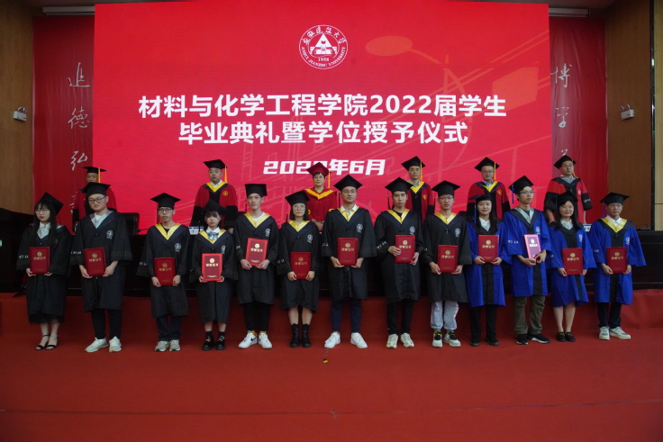 本网讯 6月9日,材料与化学工程学院2022届毕业典礼暨学位授予仪式在实验综合楼二楼报告厅举行。校党委常委、纪委书记王玉兰,材化学院党政领导、各专业系主任、全体毕业生学业导师、全体辅导员、2022届毕业生、非毕业班学生代表参加典礼。典礼由学院党委副书记主持。