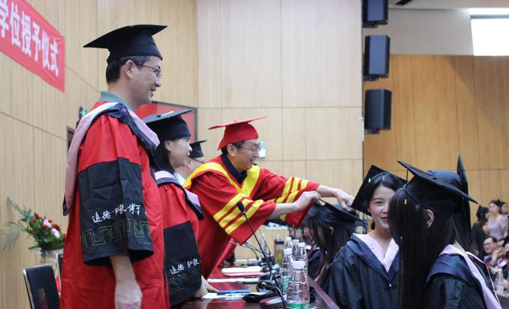 谆谆教诲刻心间,赤子之心映容颜。雄壮激昂的国歌声起,全体人员垂手肃立,齐唱国歌,在庄重热烈的气氛中,典礼正式开始。学院党委书记宣读省级、校级品学兼优毕业生表彰决定,对受表彰的学生表示祝贺,鼓励同学们在未来的旅途中继续锤炼自身本领,彰显青春力量。张亚新和学院领导为毕业生颁发学位证书并拨穗扶正流苏,共同庆祝毕业生们圆满完成学业,并为毕业生们送上祝福,毕业生们满怀着激动的心情,满怀着对未来的期望,踏上了为梦想而奋斗的新征途。