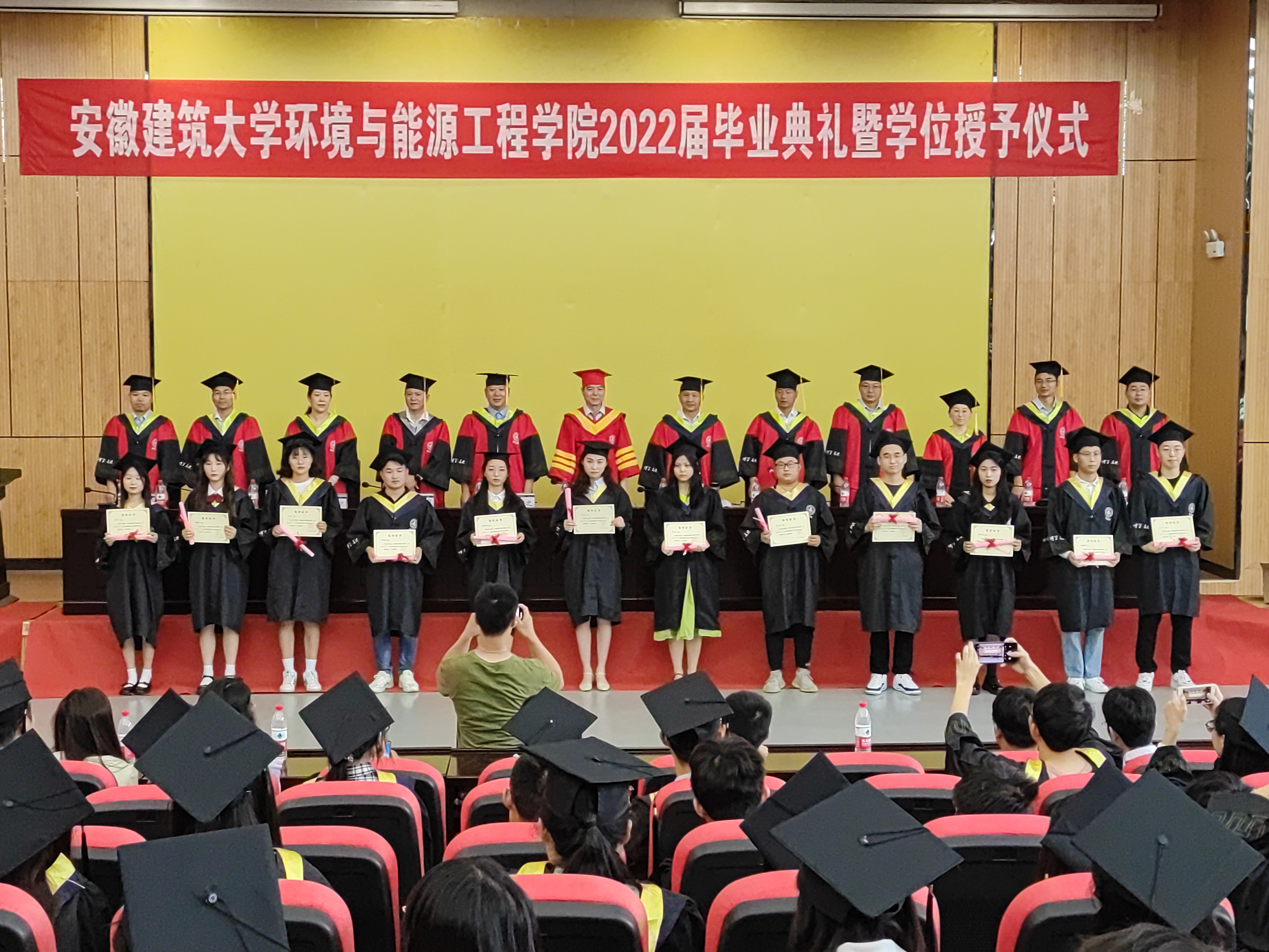 本网讯 6月13日上午,环能学院2022届毕业典礼暨学位授予仪式在实验综合楼2楼报告厅隆重举行,学校党委副书记、校长黄显怀,学院班子成员、各系系主任、教师代表、全体专兼职辅导员和毕业生参会。