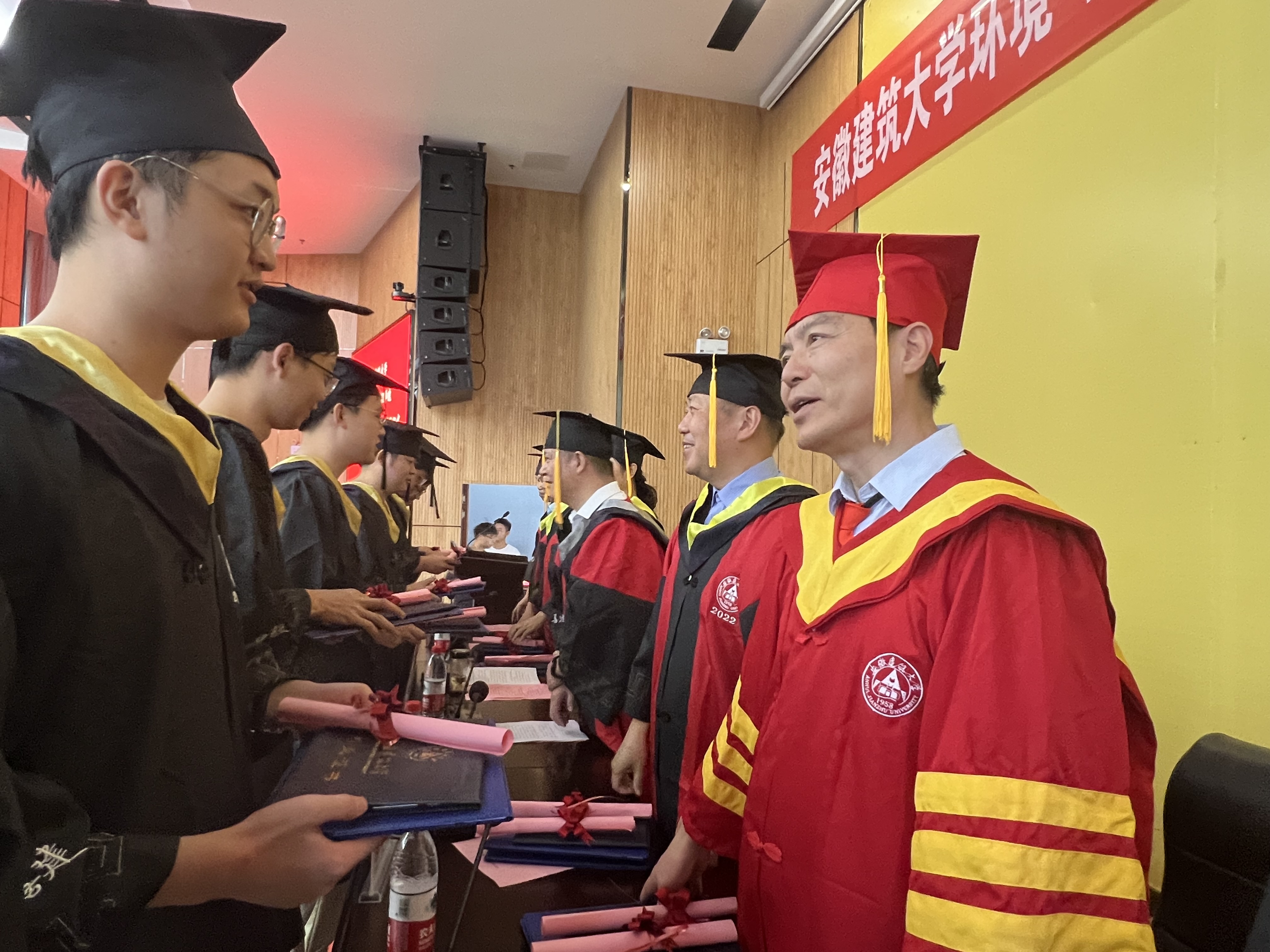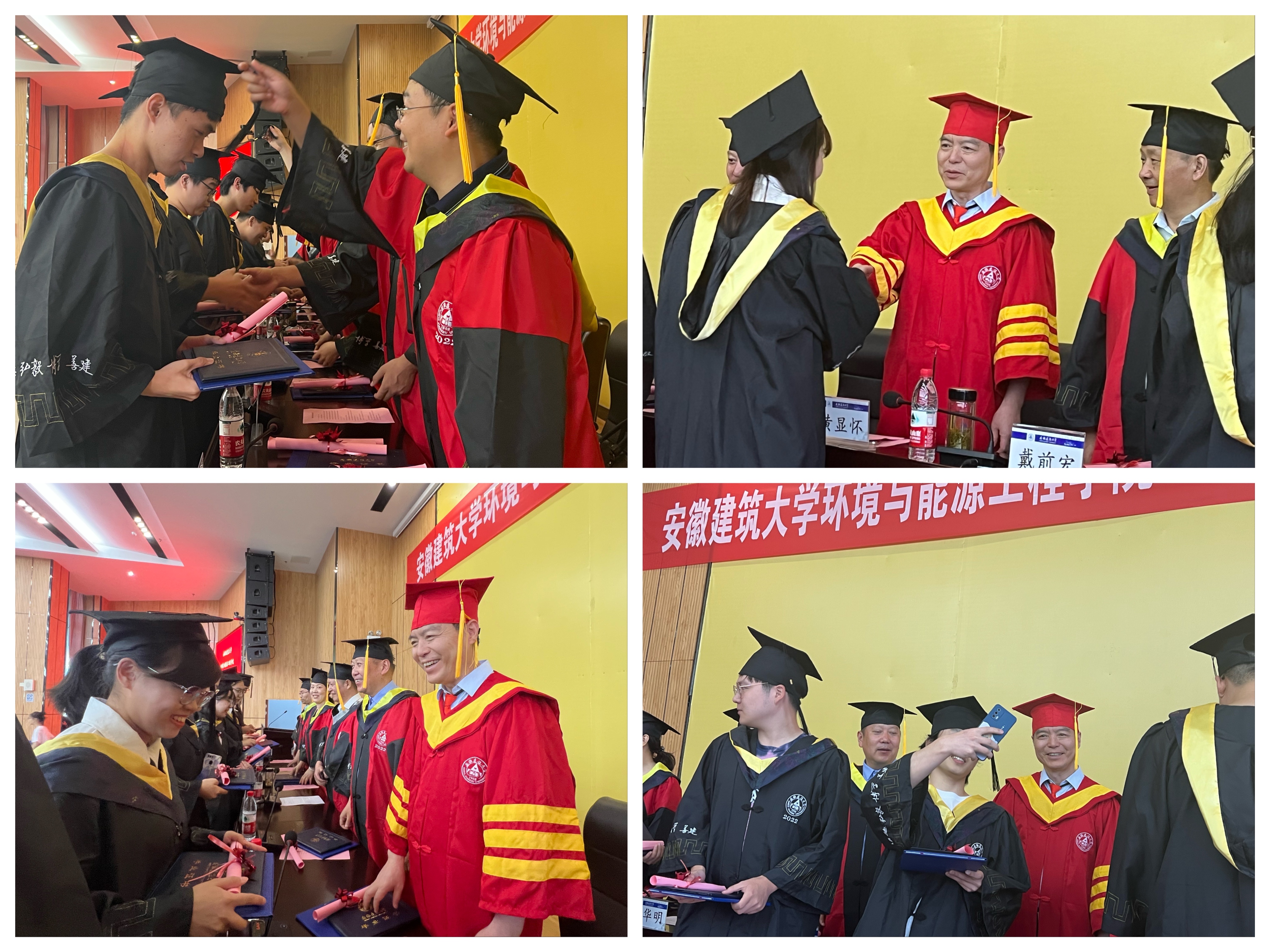 黄显怀代表学校恭贺各位毕业生圆满完成学业,四年来,各位毕业生与安建大同向同行,建大见证了同学们的青春,同学们也陪伴着建大朝着建设国内一流、特色鲜明的高水平建筑大学奋进发展。他希望毕业生们保持勤学善思的状态,树立追梦圆梦的志向;保持向上生长的姿态,坚定笃行不怠的脚步;保持乐观积极的心态,成就自信自强的人生。希望同学们不负母校期许,为人生交上满意答卷。