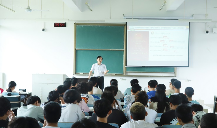 校领导深入学生课堂,为大学生讲授思政课,是深入贯彻落实习近平总书记关于“大思政课”重要指示精神的生动实践,推动党的创新理论进教材进课堂进学生头脑的重要举措。通过专题讲授,引导同学们学深悟透党的创新理论,厚植爱党爱国爱社会主义的情感,弘扬伟大建党精神,坚定走好中国道路、实现中华民族伟大复兴的信心和决心,奋进新征程、建功新时代,以更加优异的成绩喜迎党的二十大胜利召开。(文/图:王勇 蒋芮;审核:谢建)