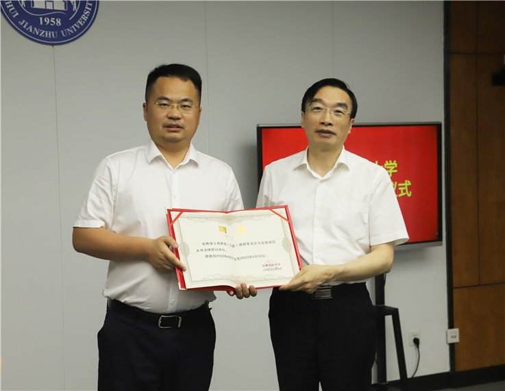 仪式上,孙道胜为法律顾问单位和法律顾问、人力资源顾问颁发聘书,并发表讲话。他表示,建立和完善法律顾问制度是学校深入贯彻落实习近平法治思想、努力提升依法治校水平的重要举措;所聘法律顾问均经过严格考察遴选产生,专业造诣深厚、职业素养过硬,担任学校法律顾问使命光荣、责任重大。此次法律顾问聘任仪式,标志着学校法律顾问专家团正式成立,掀开学校法治建设、依法治校的新篇章。