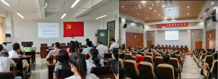 基层党支部是发挥党密切联系群众的桥梁和纽带,通过政策宣讲、解疑释惑,引导师生听党话、跟党走,不断扩大党的群众基础、增强党的阶级基础,让党的旗帜在社会基层高高飘扬。纲要党支部充分发挥自身专业优势,除举办各种特色党史学习教育外,还积极拓展党支部服务社会的空间和能力,组织支部党员走出校门,走进社区,积极承担校内外一系列相关理论宣讲活动,强化理论服务社会的功能。2020年7月,支部党员夏淑娟应ku游官方环能学院邀请,为该院党员讲授了一堂《学党史,知党情》的党课;2020年10月,安徽卫视、学习强国等主流媒体报道了支部党员谢建在阜阳宣讲《习近平谈治国理政》第三卷的情况。