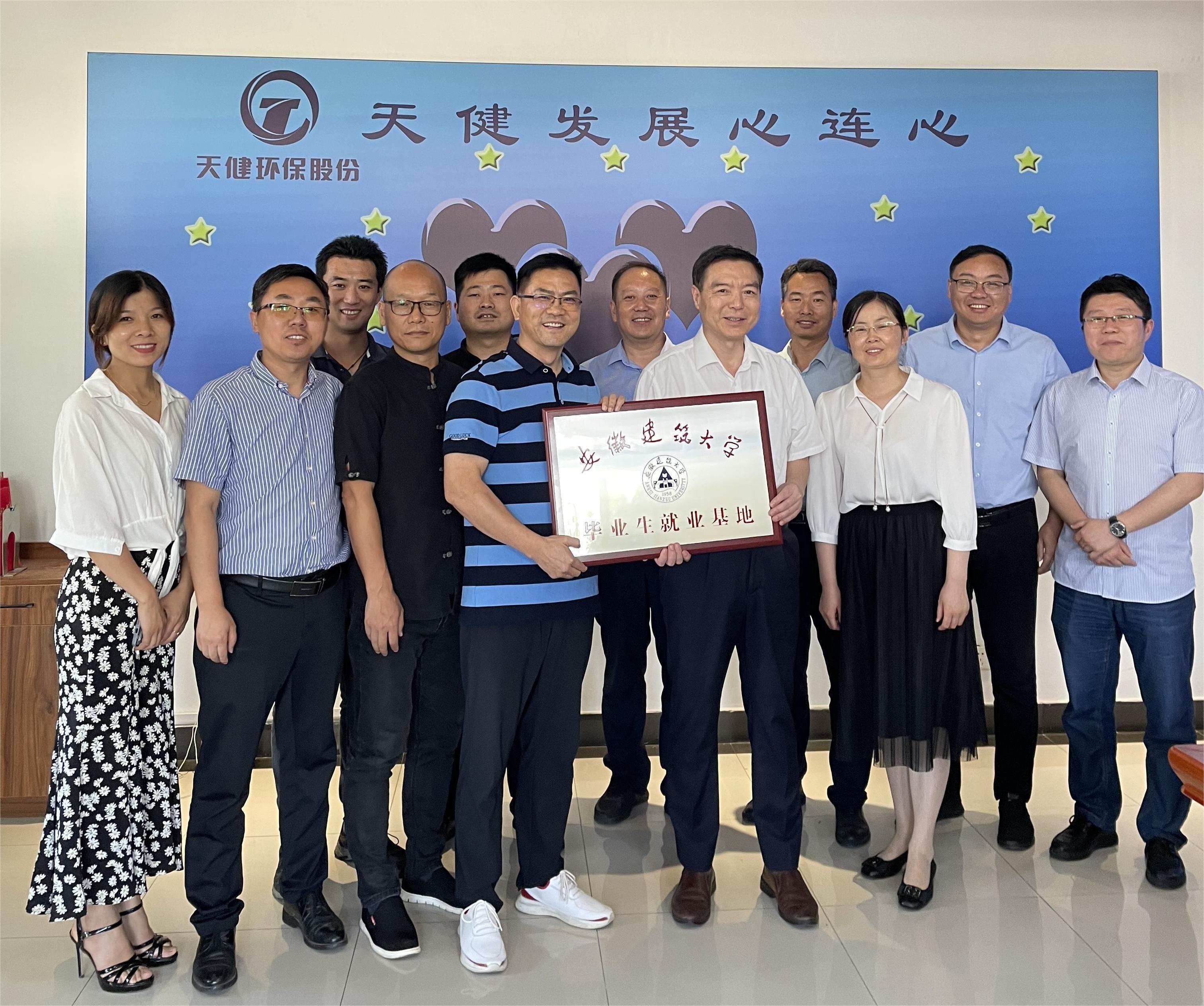随后,学校与安徽天健环保股份有限公司签署了《毕业生就业基地建设协议书》,并举行了毕业生就业基地授牌仪式。