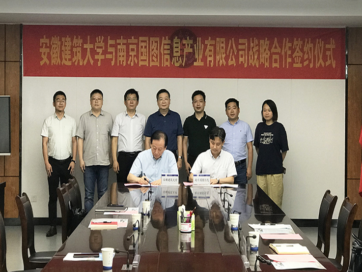 本网讯 7月6日下午,校党委常委、副校长蔡新立带领科技处、科技成果转化中心、环境与能源工程学院、电子与信息工程学院、机械与电气工程学院、公共管理学院和节能研究院相关负责人与南京国图信息产业有限公司、安徽舜禹水务股份有限公司签订校企产学研战略合作协议。
