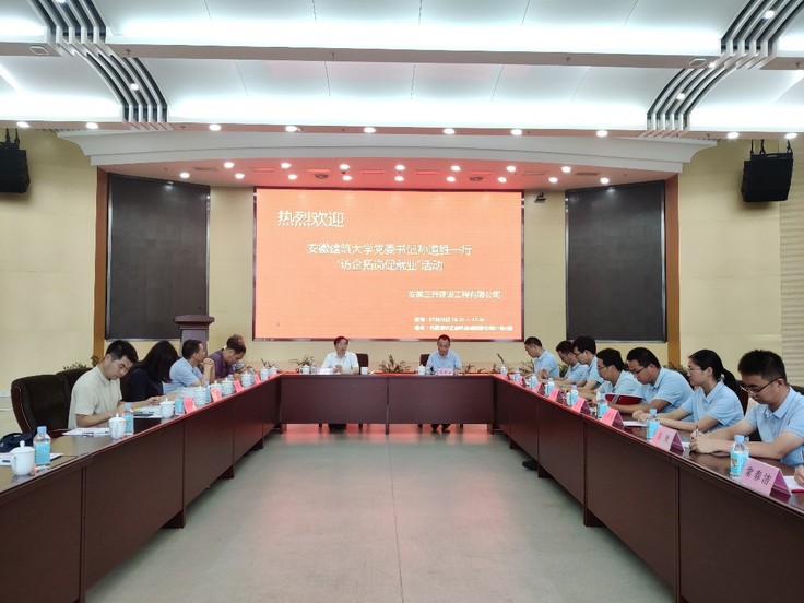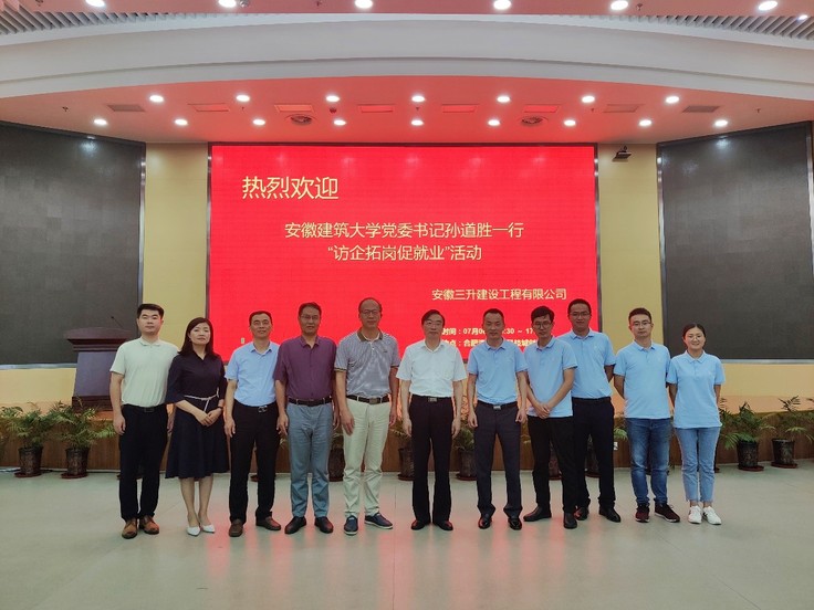 本网讯 7月6日下午,校党委书记孙道胜率校就业工作处、校团委、机电学院、材化学院、经管学院相关负责人赴合肥轨道交通集团有限公司及安徽三升建设工程有限公司开展“访企拓岗促就业”专项活动。