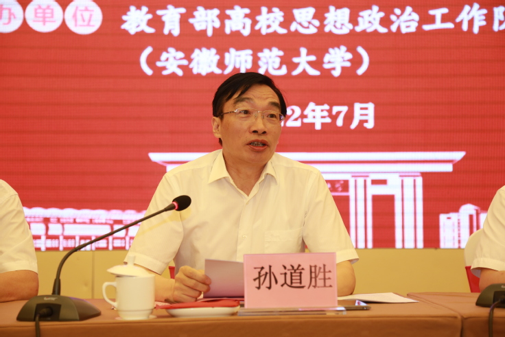 本网讯 7月11日上午,我校“2022年高校思想政治工作队伍综合能力提升专题培训班”开班仪式在芜湖如期举办,校党委书记孙道胜出席并作动员讲话。安徽师范大学党委常委、副校长熊宇杰,安徽师范大学马克思主义学院院长、教育部高校思想政治工作队伍培训研修中心办公室主任姚宏志,校学工部、研工部负责人、各学院副书记、全体辅导员等思想政治工作队伍相关人员参加了开班仪式。开班仪式由姚宏志主持。
