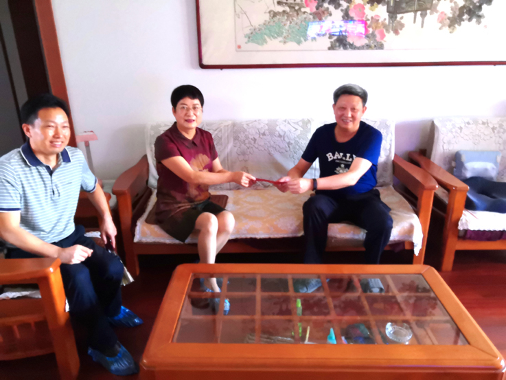 黄显怀一行来到已有72年党龄的老党员范柏山和原安徽建筑工业学院院长马春生的家中探望交谈,亲切询问了他们和家人的身体情况和生活状态,对他们在学校发展历程中做出的突出贡献表示感谢,叮嘱要注意防暑降温,保重身体,并代表学校送上慰问金。