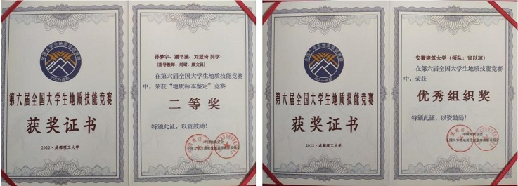 本网讯 近日,中国地质学会发布了《关于公布第六届全国大学生地质技能竞赛获奖名单的通知》,在土木学院岩土工程系教师刘珺、颜文昌和宣以琼老师的指导下,由潘书涵、孙梦宇、刘冠琦组成的参赛队伍获得“地质标本鉴定”单项二等奖,学校获“优秀组织奖”。