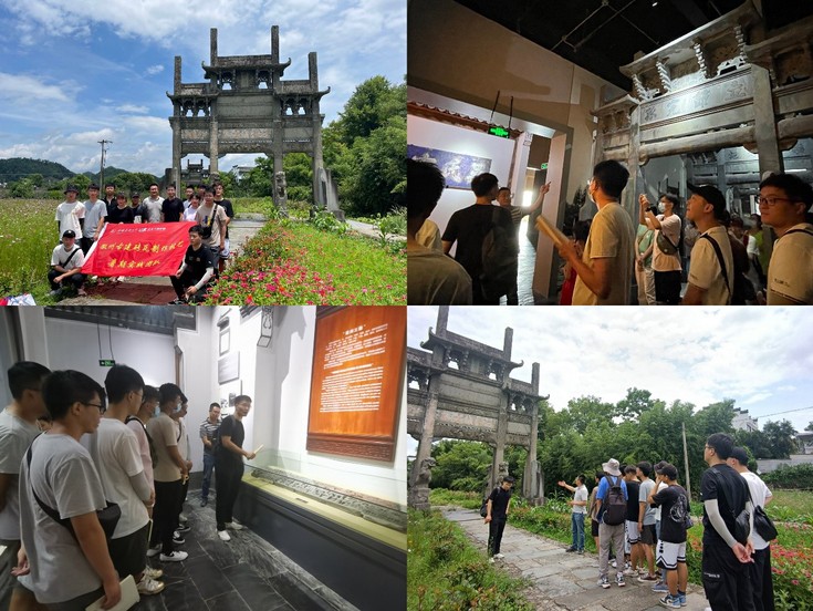 土木学院“徽州古建砖瓦制作技艺”暑期实践团队,结合专业特长前往黄山市开展暑期社会实践,师生们首先前往安徽省中国徽州文化博物馆,在博物馆讲解员的带领下,师生们通过徽州的历史与地理、徽商的发展史、徽州教育、徽州建筑、徽州艺术以及徽州科技系统了解了徽州地区古老的历史和文化,参观了包括徽州古建三绝在内的各类徽州工艺。指导老师张李扬详细为同学们讲解了徽州三雕中砖雕的生产和制作工艺。研究生们不仅感受到了徽州地区古老的历史和灿烂的文化、拓展了知识面,而且激发了同学们将专业知识与传统技艺相融合的热情。