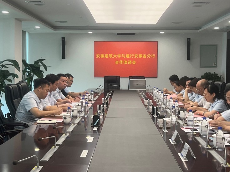 本网讯 7月19日,校党委副书记、校长黄显怀率办公室、财务处、就业工作处、国资处、经管学院相关负责人走访中国建设银行安徽省分行,开展产学研合作暨访企拓岗促就业座谈交流。建设银行安徽省分行党委书记、行长邹致师、分行高管、校友代表参加了座谈交流,就深化校企战略性合作进行探讨。