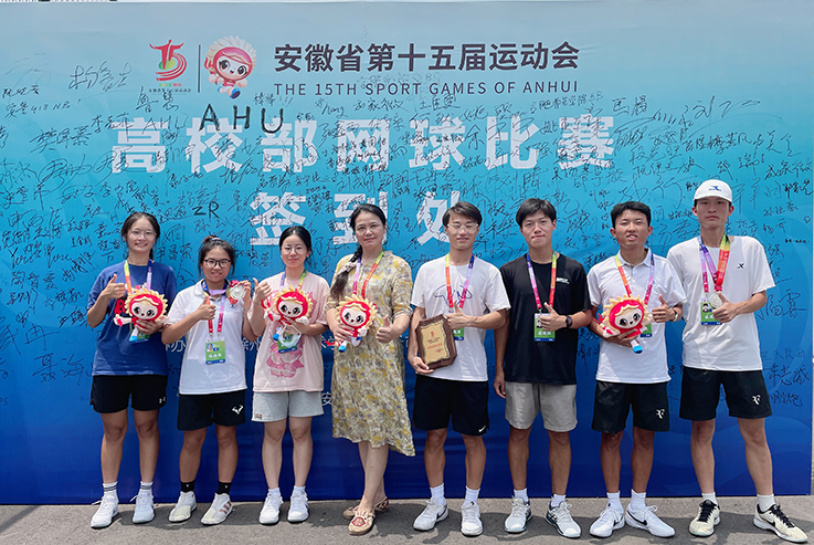 本网讯 7月27日,安徽省第十五届运动会高校部网球比赛在天长市落下帷幕,我校共有7名网球运动员参加本届省运会甲组比赛,并喜获混双亚军和第五名优异成绩,韦正、艾欣欣获得优秀运动员称号,同时我校网球队荣获体育道德风尚奖。