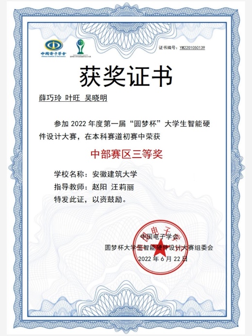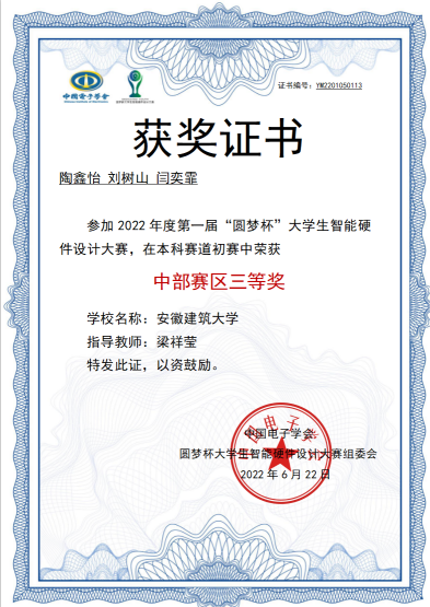 本网讯 第一届“圆梦杯”全国大学生智能硬件设计大赛初赛于6月5日圆满结束。我校电信学院参赛的3支队伍全部获奖,分别斩获中部赛区一等奖1项,三等奖2项。
