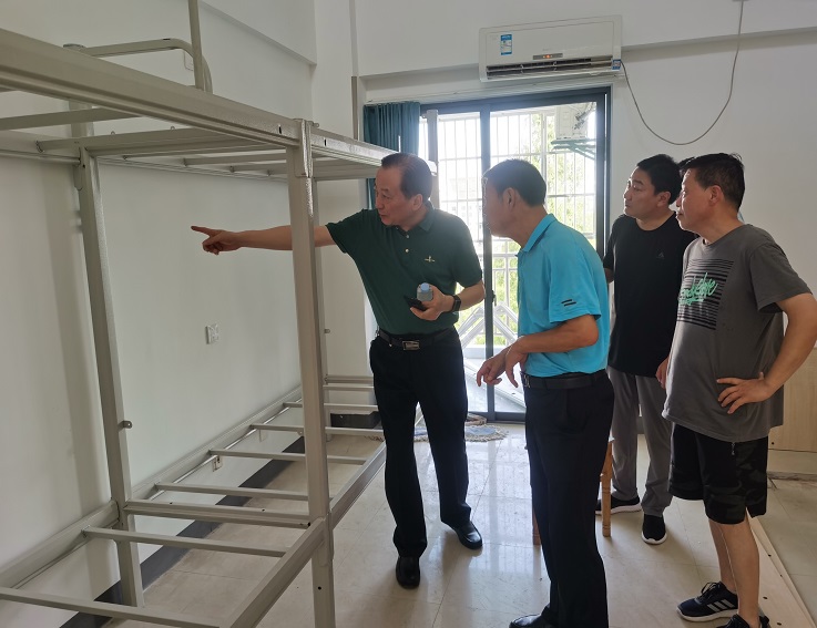 学生宿舍维修改造工程已接近尾声,蔡新立叮嘱负责人员要关心施工人员,在高温天气下做好个人防护,保障施工安全,力争工程早日完工。(文/图:陈委婕;审稿:唐黎)