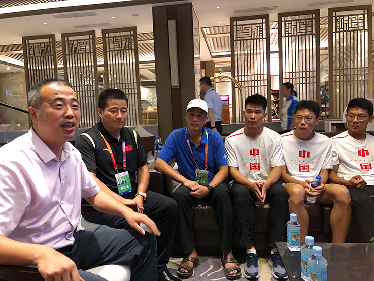 闵杰与运动员和教练员亲切交谈,详细了解运动员们赛前训练、饮食、住宿和学习等情况,对他们提出的问题一一解答,并对运动员们在炎炎夏日下的训练给予充分的肯定,勉励运动员要树立信心,顽强拼搏,赛出风格,赛出水平。闵杰嘱咐运动员要劳逸结合,特别在饮食和出行方面要注意,确保平安备赛,赛出成绩。