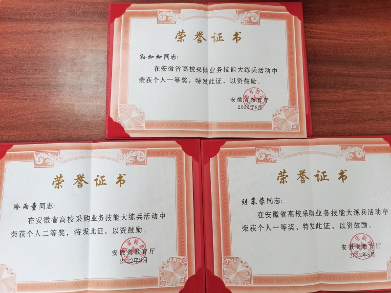 本次比赛由安徽省教育厅主办,以“采购业务大练兵 创优环境助发展”为主题,旨在加强高校招标采购人员业务能力,提升采购专业化水平,进一步强化高校依法采购意识,激发采购业务学习热情,推动采购工作规范高效开展。招投标管理办公室认真组织,参赛人员精心准备,孙加加、刘慕蓉在初赛中取得个人一等奖,冷雨童获得个人二等奖的好成绩。