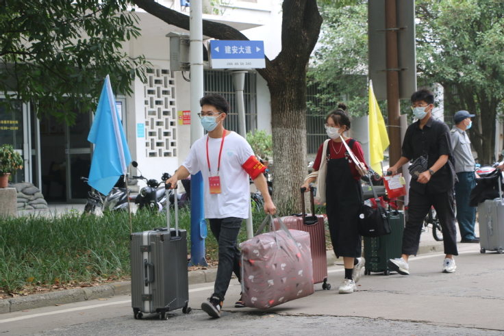 一次次扫码与测温、一声声亲切的鼓励、一句句热情的问候,一双双接过行李的手……以后,建大就是你们温暖的家。
