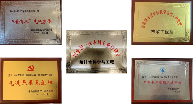支部建设和专业发展同频共振,发挥党支部政治引领作用,带领和激励党员扎实工作。凝聚专业全体教师智慧和力量,迎难而上,在培养方案修订、博士点申报、实践教学基地建设和学科特区建设等方面,引领、动员教师党员勇挑重担,人尽其才。在全体教师共同努力下,市政工程系在党建工作和专业建设取得了“双丰收”。给排水科学与工程专业2019年12月,获国家级一流本科专业建设点;市政工程系教师党支部先后荣获2018-2020年度学校“三全育人”先进集体、2021年先进基层党组织等称号;市政工程系获2020年安徽省示范基层教学组织、ku游官方本科教学管理先进集体等称号。党支部教师党员王坤、黄健、李卫华分别荣获安徽省“教坛新秀”、校“优秀党务工作者”、“优秀党员”等个人荣誉。