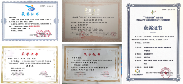 党支部积极组织教师指导学生参加大创项目,通过以赛代练,将理论知识与实际相结合,培养学生的创新能力和动手能力。2018年以来,教师党员指导的国家级大创项目5项以上,省级大创项目20余项,参与学生90余人;组织学生参加全国大学生给排水科技创新大赛的校内选拔赛、“挑战杯”、“节能减排”和“互联网+”等院内选拔赛等,先后获得第四届“深水杯”全国大学生给排水科技创新大赛二、三等奖,第七届安徽省“互联网+”大学生创新创业大赛高教主赛道银奖、第十四届全国大学生节能减排社会实践与科技竞赛三等奖和安徽省大学生生态环境创新创业大赛特等奖等多项荣誉,杨厚云、余丽等教师党员获得“优秀指导教师”称号,给排水科学与工程专业的创新实践工作在国内同行中占有重要位置。