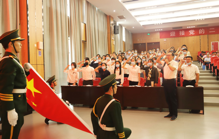 会上,新进教师面对国旗进行了庄严宣誓,许下了一名人民教师的神圣承诺。
