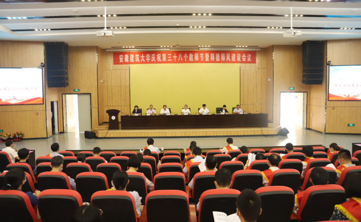 本网讯 9月9日,学校在南校区实验综合楼二楼报告厅隆重召开庆祝第38个教师节暨师德师风建设会议。校领导孙道胜、黄显怀、蔡新立、王玉兰、闵杰、蔡国军、李早出席大会,全体处级干部,2022年新入职教师、师德标兵、优秀教师、优秀教育工作者等教师代表参加会议。会议由校党委常委、副校长蔡新立主持。