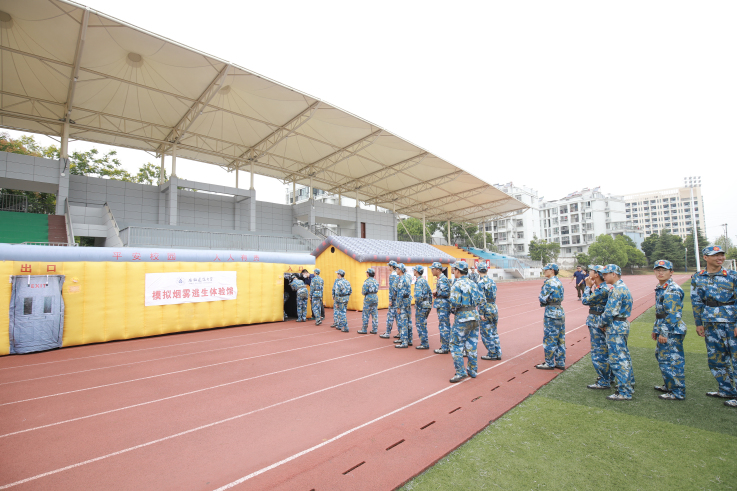 9月上旬新生军训期间,学校人武部组织2022级新生开展灭火器模拟操作演练和浓烟环境逃生演练。
