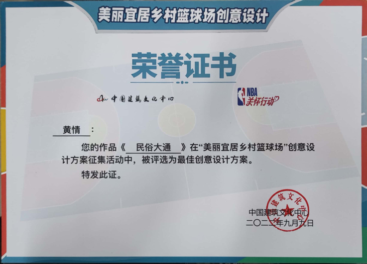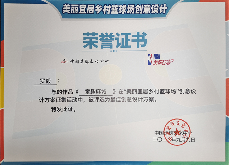 近日,由住房和城乡建设部帮扶办公室指导、住房和城乡建设部直属事业单位中国建筑文化中心承办、中国青少年基金会NBA关怀行动公益基金支持的“美丽宜居乡村篮球场”创意设计方案征集结果公布,我校建规学院王昊禾老师指导的21风景园林罗毅作品《童趣麻城》、21城乡规划黄情作品《民俗大通》获最佳创意设计方案。