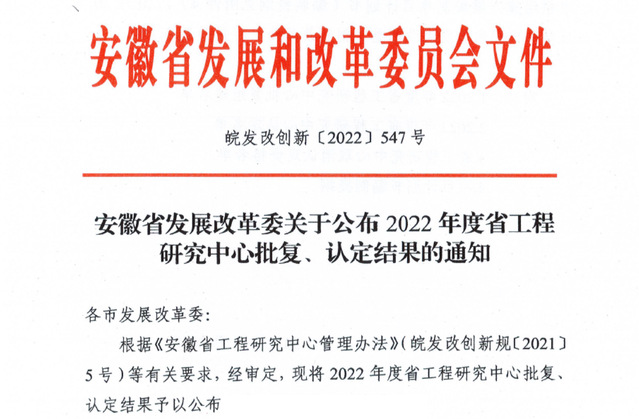 近日,安徽省发展和改革委员会下发了《安徽省发展改革委关于公布2022年度省工程研究中心批复、认定结果的通知》(皖发改创新〔2022〕547号),由我校牵头申报的“安徽省智能地下探测与环境岩土工程研究中心”获批,这标志着我校在智能地下探测与环境岩土方面的创新和研发有了更高的平台,将有力促进相关学科和专业的发展。