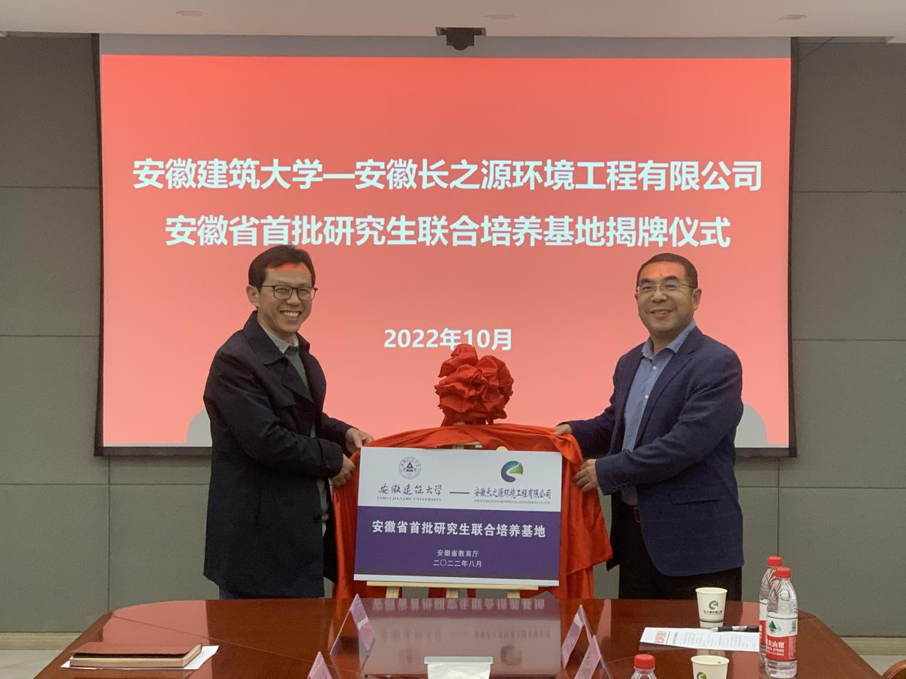 本网讯 为进一步加强学校研究生教育联合培养基地建设,提高专业学位研究生培养质量,10月9日,校党委常委、副校长蔡国军率研究生院、发展规划处、环能学院赴安徽长之源环境工程有限公司进行研究生教育联合培养基地建设座谈交流并参加基地揭牌仪式。