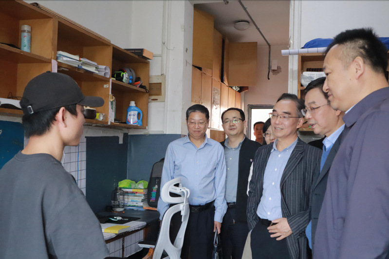 在学生公寓6号楼,吴运传一行查看学生住宿环境,了解他们学业和思想动态,“生活上有没有什么困难?”,“是否有什么需要老师们帮忙解决的问题?”一句句关心的话,让同学们倍感温暖,领导们鼓励学生养成良好的生活、学习习惯,重视寝室环境,积极努力拼搏,不断提升自身综合素质。