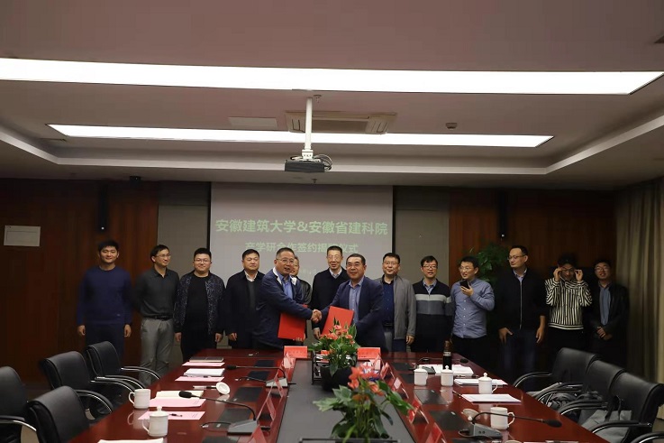 本网讯 近日,校党委常委、副校长蔡国军率队赴安徽省建筑科学研究设计院签订校企研究生培养及产学研合作协议。安徽省建筑科学研究设计院副院长郭杨、徐从广,总工办主任陈卫东,科技业务部乐腾胜,以及学校研究生院、科技处、土木工程学院、安徽省智能地下探测研究院相关人员参加了座谈及签约仪式。