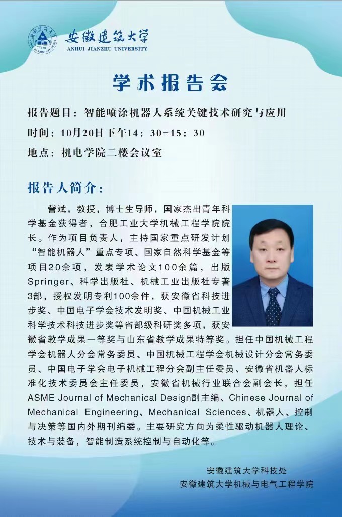 2022年第10场学术报告:智能喷涂机器人系统关键技术研究与应用