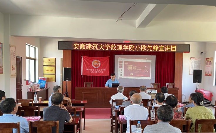 青春由磨砺而出彩,人生因奋斗而升华。在喜迎党的二十大胜利召开之际,8月10日,数理学院“小欧”先锋宣讲团赴舒城县汤池村开展喜迎党的二十大宣讲活动。先锋宣讲团成员水天柱老师围绕中共一大召开背景、中共一大背后的故事、我们的传家宝——红船精神进行宣讲。激励广大党员要学习和弘扬“红船精神”,赓续共产党人精神血脉,让“红船精神”绽放新的时代光芒。学生党员戚如如、章婷分别介绍了中共一大代表人物,因为相同的信仰,他们走到了中国共产党这个原点,又因为不同的信仰他们从相同的起点走向了不同的归宿。宣讲会后学生党员与汤池村党支部的老党员们进行交流,了解他们的入党故事。