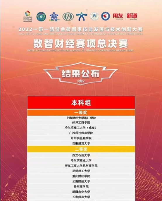 10月30日,2022一带一路暨金砖国家技能发展与技术创新大赛数智财经赛项全国总决赛成功落下帷幕。在经管学院任国瑞和徐奕红两位教师精心指导下,经管学子张青怡、林裕凡、吴美美、罗少含组建的团队脱颖而出,最终荣获全国一等奖。