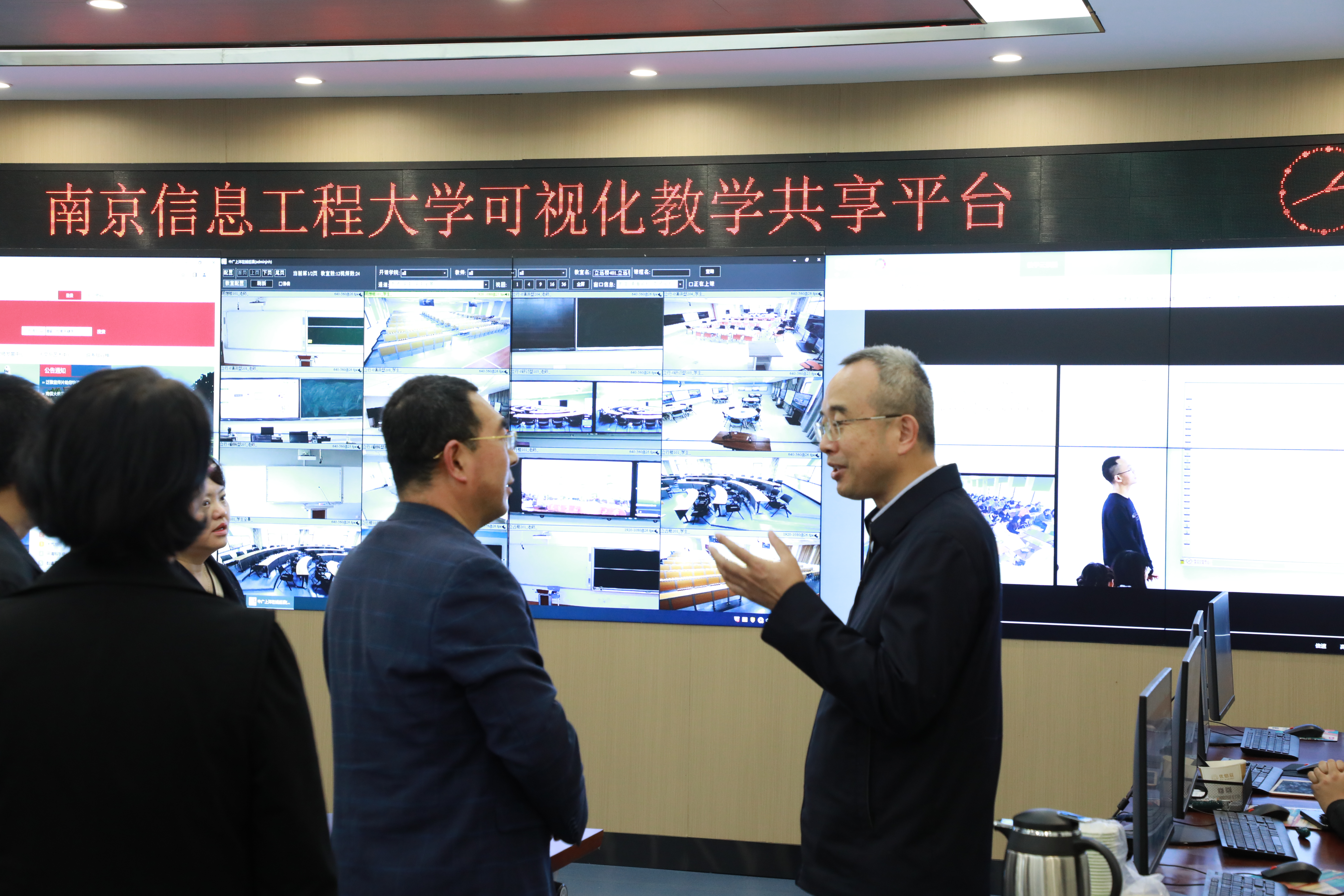 首先,胡明保等陪同蔡国军一行参观了南信大金牛湖产教融合园区食堂、学生宿舍、可视化信息共享平台、教室、实训实验室等师生学习、工作和生活环境。