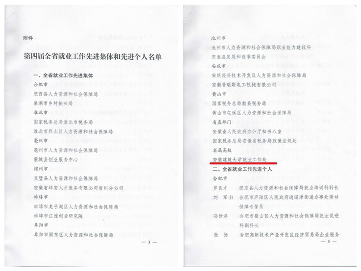 近日,安徽省人民政府公布第四届全省就业先进集体和先进个人评选结果,授予35个单位“全省就业工作先进集体”称号、100位同志“全省就业工作先进个人”称号,ku游官方就业工作处名列其中,是唯一一个获得先进集体表彰的省属高校。